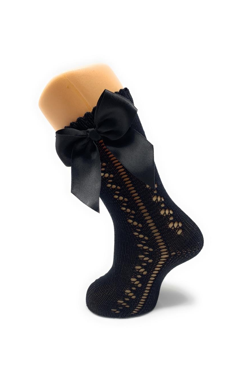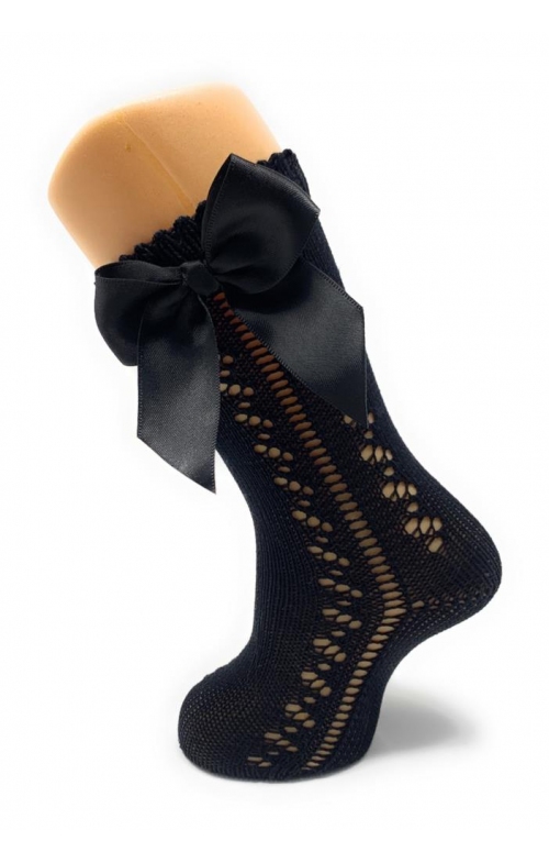 Knee High Openwork socks with Bow in perle cotton with polyamide for more elasticity. Available in a wide variety of colors from size 000 (0-3 months) to 6 years. COMPOSICIÓN: 80% COTTON, 20% POLYAMIDE