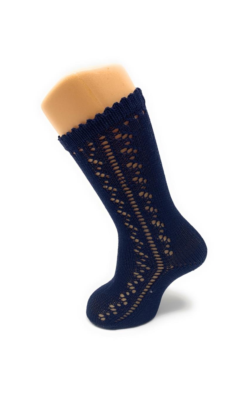 Knee High openwork socks in perle cotton with polyamide for more elasticity. Available in a wide variety of colors from size 000 (0-3 months) to 6 years. COMPOSICIÓN: 80% COTTON, 20% POLYAMIDE
