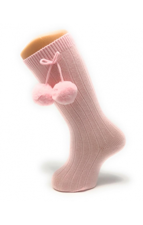 Rib Knee-high socks with Pompoms in combed cotton with elastane for better comfort. Available in a wide variety of colors and from size 00 3-6 months to 8 years. COMPOSICIÓN: 78º/ₒ COTTON. 20º/ₒ POLYAMIDE. 2º/ₒ ELASTANE