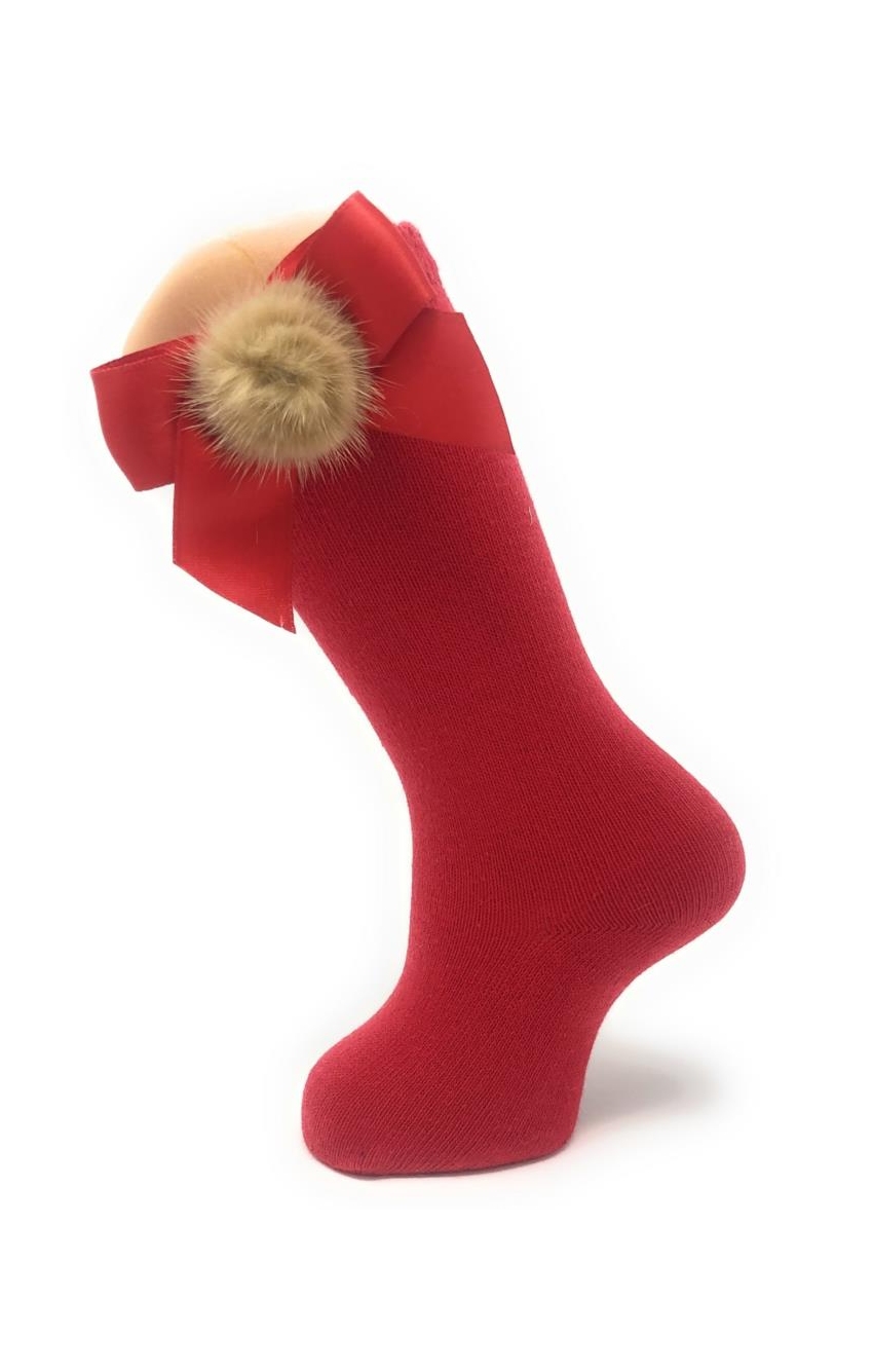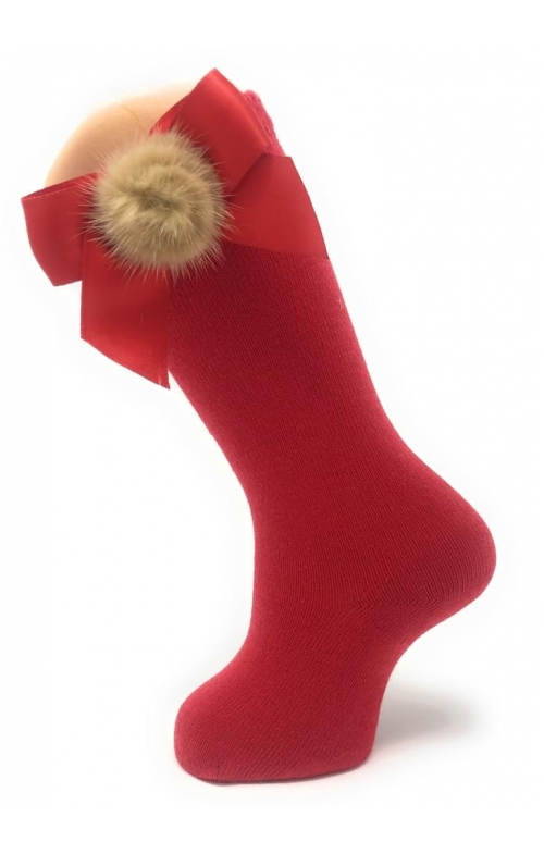 Rib Knee-high socks with Bow and Pompom in combed cotton with elastane for better comfort. Available in a wide variety of colors and from size 00 3-6 months to 8 years. COMPOSICIÓN: 78º/ₒ COTTON. 20º/ₒ POLYAMIDE. 2º/ₒ ELASTANE