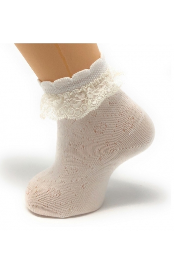 Calcetines con Calado Fino y Puntilla en hilo fino algodón con poliamida para más elasticidad, textura fresca y cómoda. Disponibles en una gran variedad de colores desde la talla 000 (0-3 meses) hasta los 12 años.