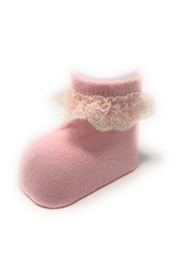 Calcetines con puntilla para recién nacido fabricados en España en algodón peinado con elastano para mayor confort con acabado suave de máxima calidad encajado en estuche regalo. COMPOSICIÓN: 80%ALGODÓN/COTTON, 17%POLIAMIDA/POLYAMIDE, 3%ELASTANO/ELASTANE