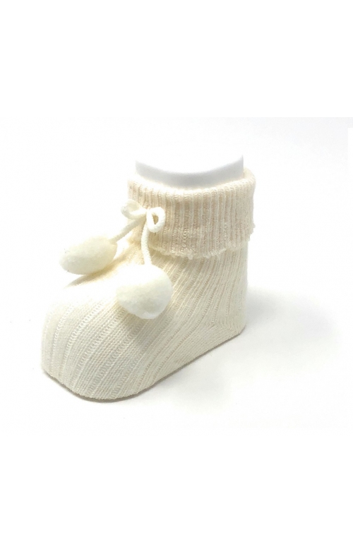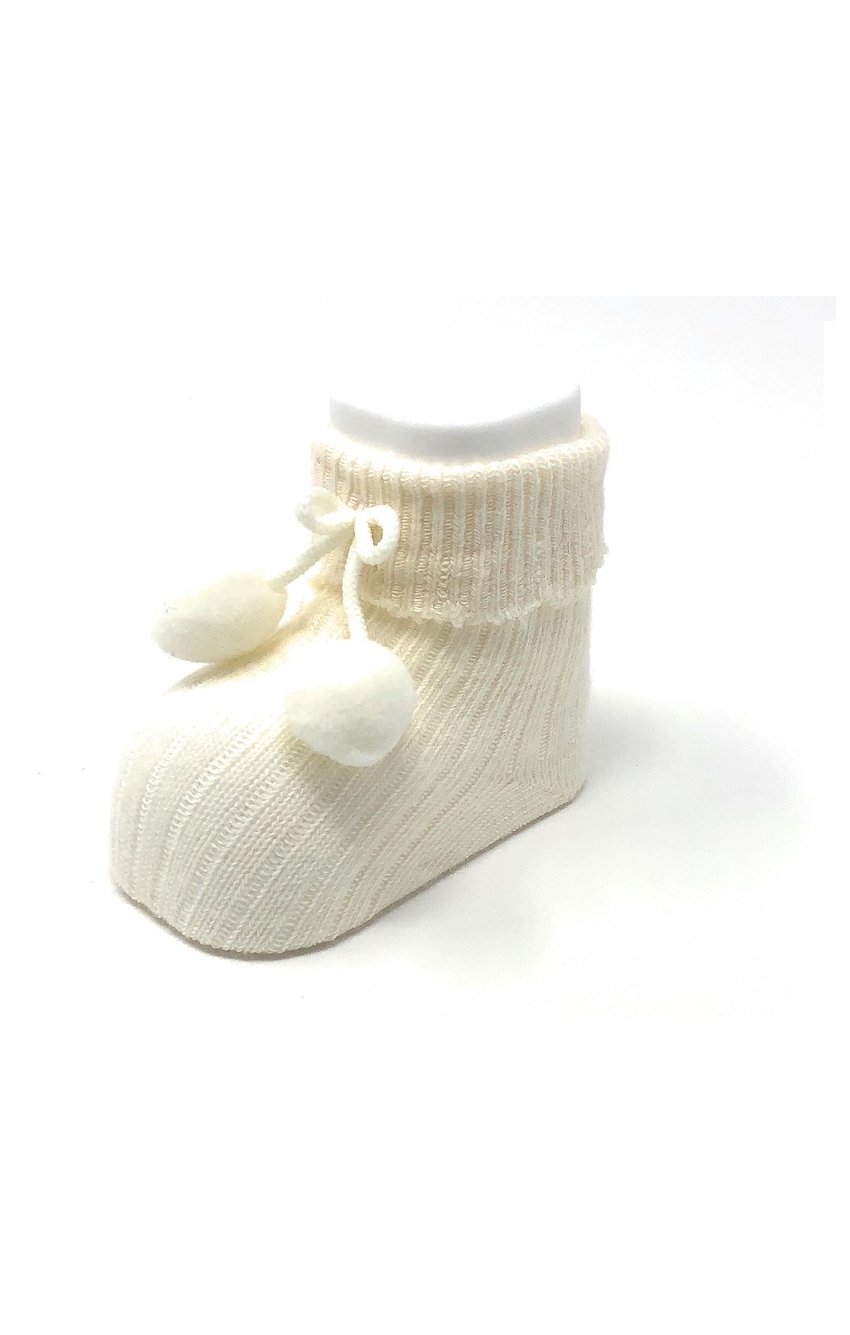 Calcetines con borlas para recién nacido fabricados en España en algodón peinado con elastano para mayor confort con acabado suave de máxima calidad encajado en estuche regalo. COMPOSICIÓN: 85% ALGODON / COTTON, 13% POLIAMIDA / POLYAMIDE, 2% ELASTANO/ELASTANE