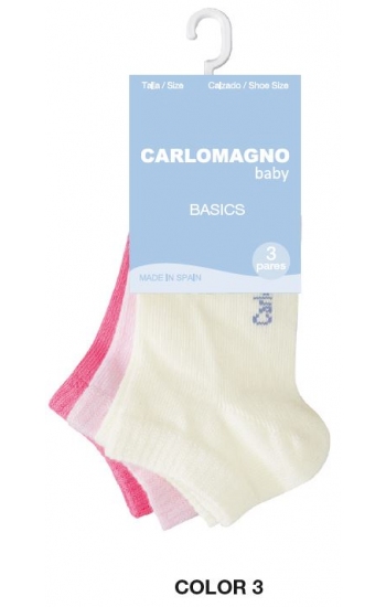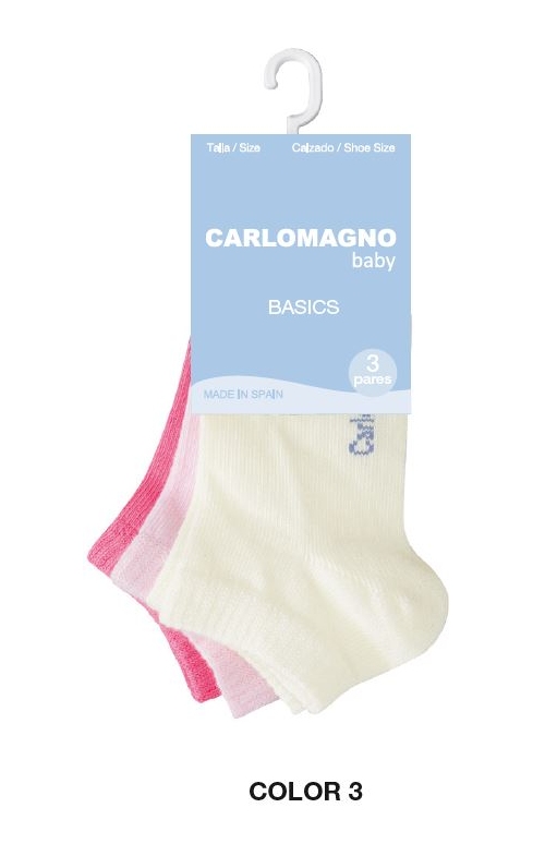 Pack de 3 Pares Calcetines Invisibles para Bebé en algodón peinado con elastano para mayor comodidad. Disponibles en las combinaciones Pack 1: Rojo-Gris-Blanco, Pack 2: Azul-Celeste-Blanco, Pack 3: Rosa fuerte-Rosa-Blanco y de la talla 00 (3-6 meses) hasta los 4 años. COMPOSICIÓN: 80%ALGODÓN/COTTON, 17%POLIAMIDA/POLYAMIDE, 3%ELASTANO/ELASTANE