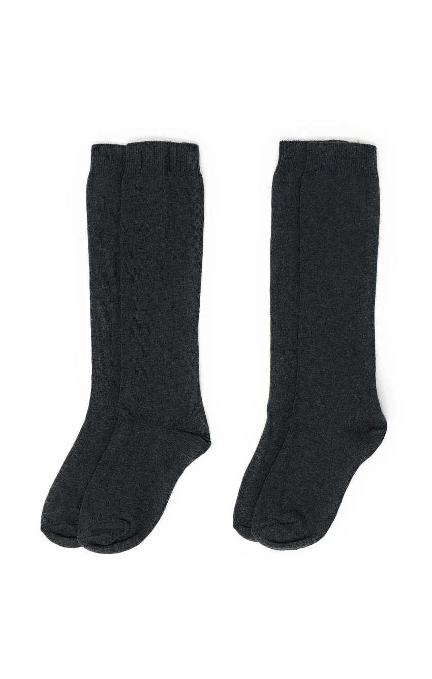 Pack de 2 pares de calcetines altos hasta la rodilla con puño antipresión en algodón peinado con elastano para mayor comodidad. Disponibles en una gran variedad de colores para el colegio y desde la Talla 2 años hasta los 14 años.