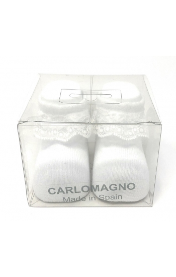 Calcetines con puntilla para recién nacido fabricados en España en hilo fino algodón con poliamida para más elasticidad, textura fresca y cómoda. Disponibles en varios colores y Talla Única RN (Recién Nacido). Encajado en estuche regalo. COMPOSICIÓN: 85% ALGODON / COTTON, 13% POLIAMIDA / POLYAMIDE, 2% ELASTANO/ELASTANE