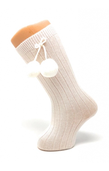 Calcetines altos de canalé con borlas en algodón peinado con elastano para mayor comodidad. Disponibles en una gran variedad de colores y desde la talla 00 3-6 meses hasta los 8 años. COMPOSICIÓN: 78º/ₒALGODONCOTTON. 20º/ₒPOLIAMIDAPOLYAMIDE. 2º/ₒELASTANOELASTANE