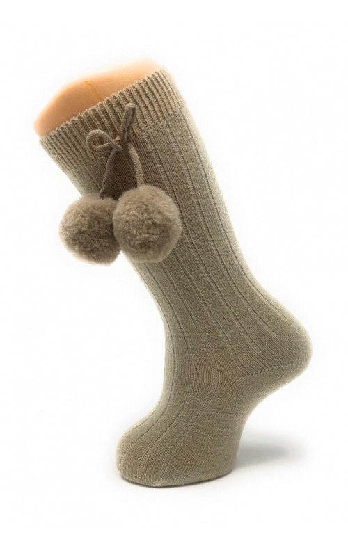 Calcetines altos de canalé con borlas en algodón peinado con elastano para mayor comodidad. Disponibles en una gran variedad de colores y desde la talla 00 3-6 meses hasta los 8 años.
