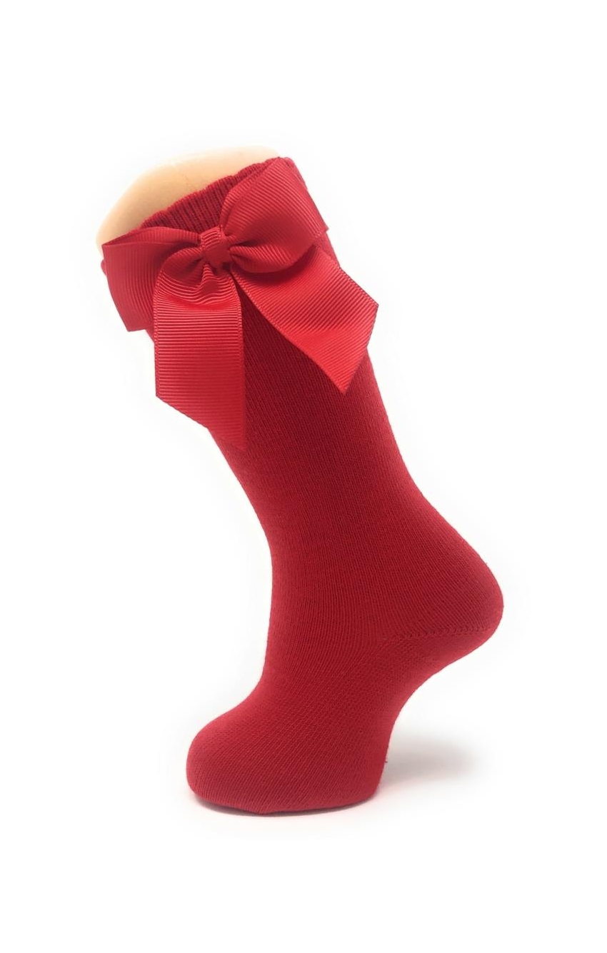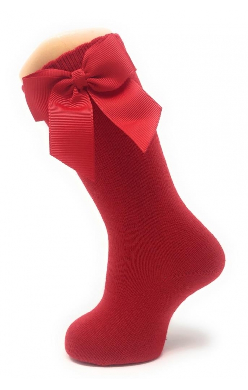 Calcetines altos con lazo gros-grain en algodón peinado con elastano para mayor comodidad. Disponibles en una gran variedad de colores y desde la talla 00 3-6 meses hasta los 8 años.