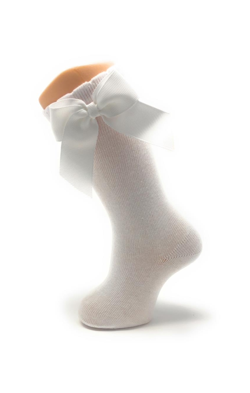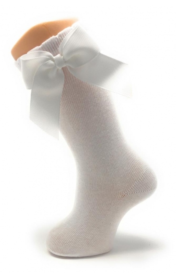 Calcetines altos con lazo gros-grain en algodón peinado con elastano para mayor comodidad. Disponibles en una gran variedad de colores y desde la talla 00 3-6 meses hasta los 8 años.
