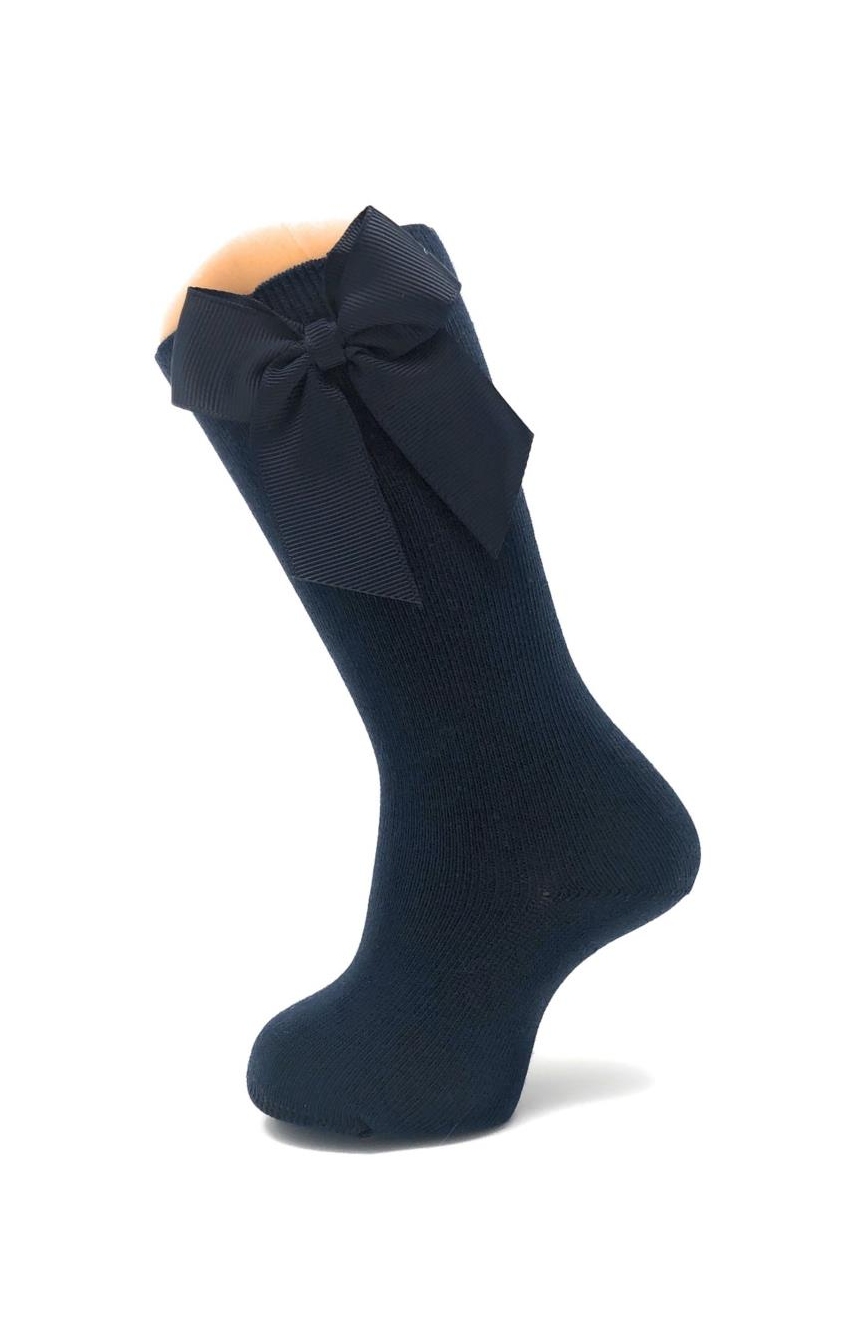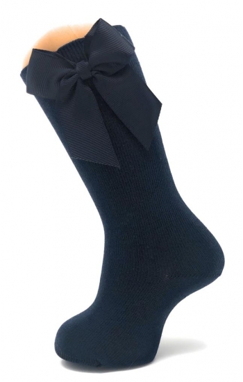 Calcetines altos con lazo gros-grain en algodón peinado con elastano para mayor comodidad. Disponibles en una gran variedad de colores y desde la talla 00 3-6 meses hasta los 8 años.