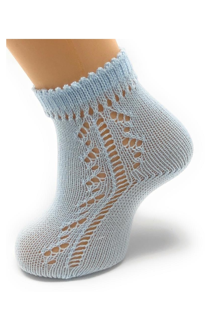 Calcetines calados en hilo perlé con poliamida para más elasticidad. Disponibles en una gran variedad de colores desde la talla 000 0-3 meses hasta los 8 años.