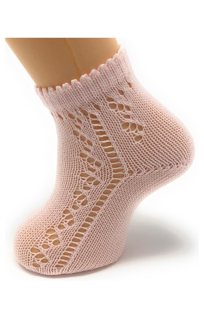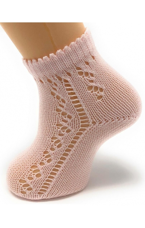 Calcetines calados en hilo perlé con poliamida para más elasticidad. Disponibles en una gran variedad de colores desde la talla 000 0-3 meses hasta los 8 años.