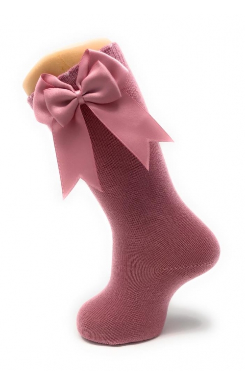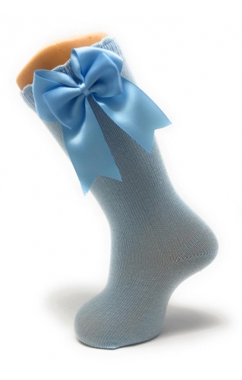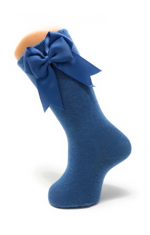 Calcetines altos con doble lazo en algodón peinado con elastano para mayor comodidad. Disponibles en una gran variedad de colores y desde la talla 00 3-6 meses hasta los 8 años.