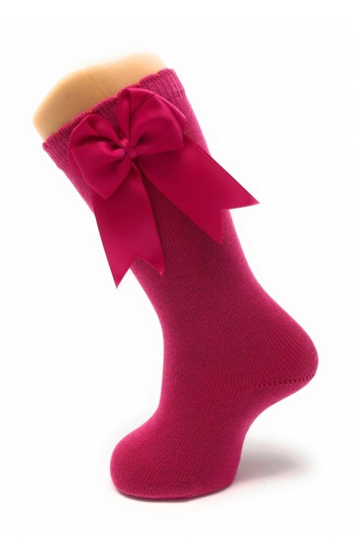 Calcetines altos con doble lazo en algodón peinado con elastano para mayor comodidad. Disponibles en una gran variedad de colores y desde la talla 00 3-6 meses hasta los 8 años.