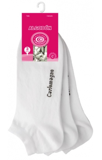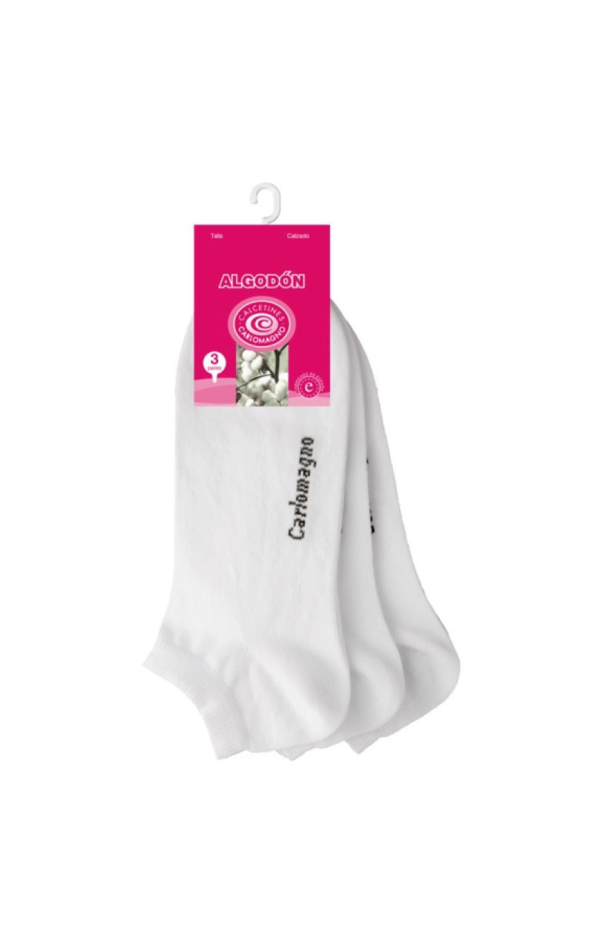 Pack 3 pares Calcetines Invisibles para Mujer en algodón peinado con elastano para mayor comodidad. Disponibles en las combinaciones Pack 1: 1 par Blanco 1 par Gris 1 par Negro, Pack 2: 3 pares Negros, Pack 3: 3 pares Blancos en Talla Única (MUJER) COMPOSICIÓN: 80%ALGODON/ALGODAO/COTTON, 18%POLIAMIDA/POLYAMIDE, 2%ELASTANO/ELASTANE