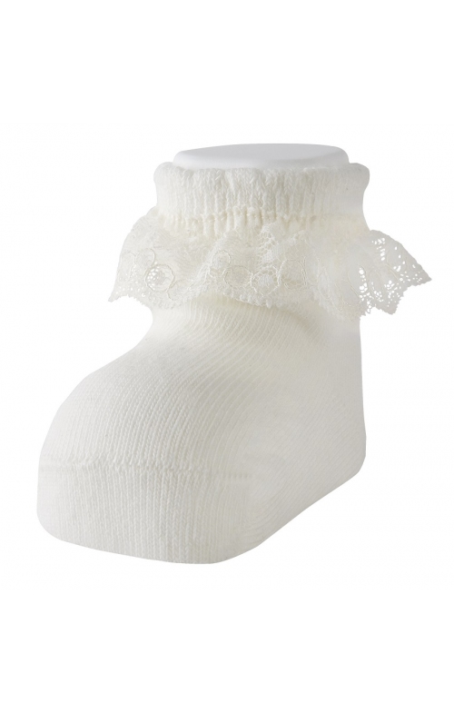 Chaussettes en dentelle pour nouveau-nés fabriquées en Espagne en coton peigné avec élasthanne pour plus de confort avec une finition douce de la plus haute qualité, emballées dans une boîte cadeau. COMPOSICIÓN:
