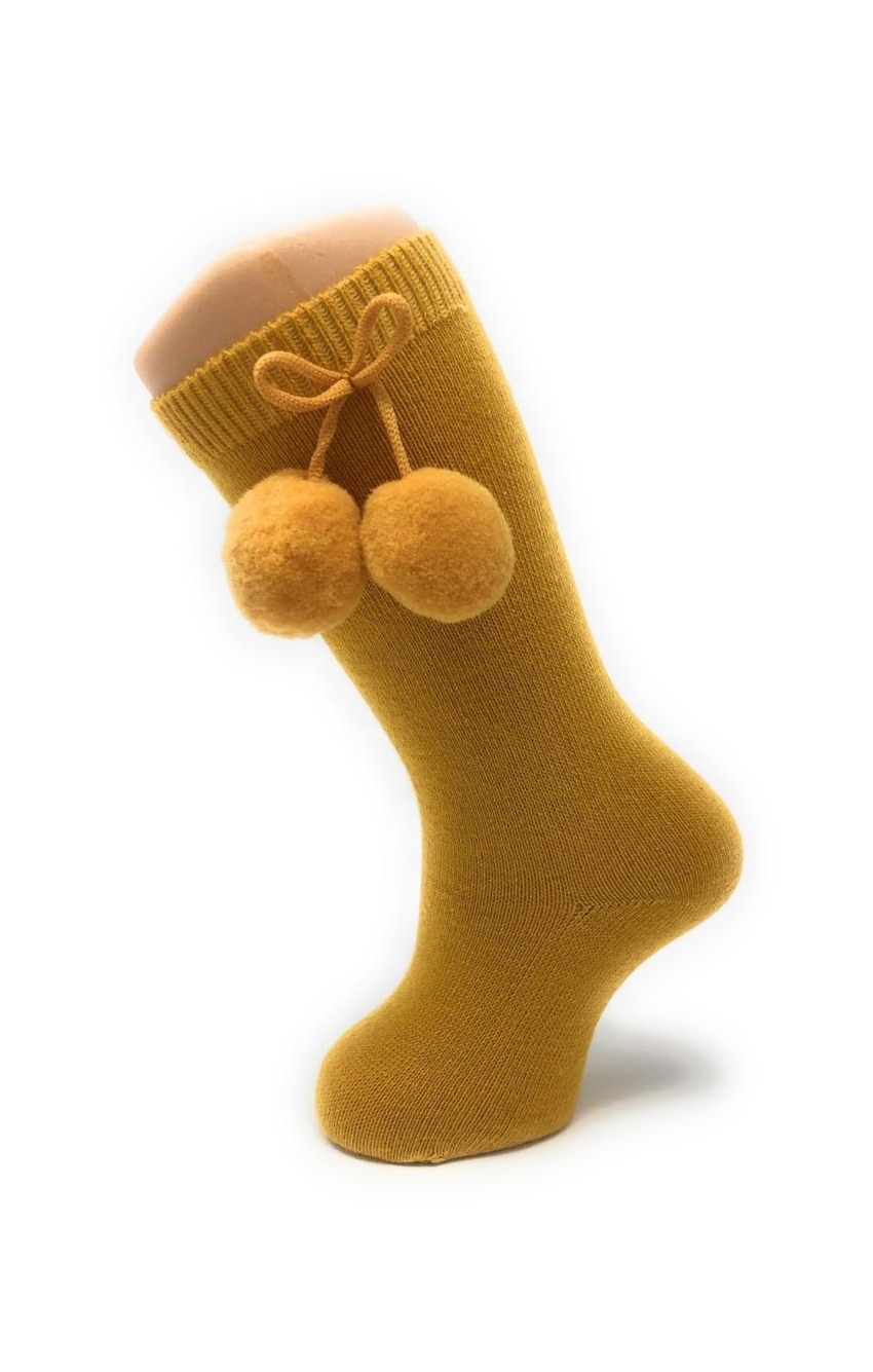 Chaussettes hautes à pampilles en coton peigné avec élasthanne pour plus de confort. Disponible dans une grande variété de couleurs et de la taille 00 (3-6 mois) à 8 ans.