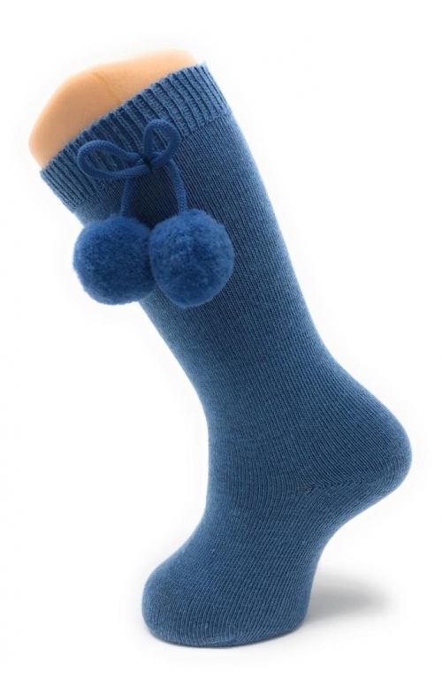 Chaussettes hautes à pampilles en coton peigné avec élasthanne pour plus de confort. Disponible dans une grande variété de couleurs et de la taille 00 (3-6 mois) à 8 ans.