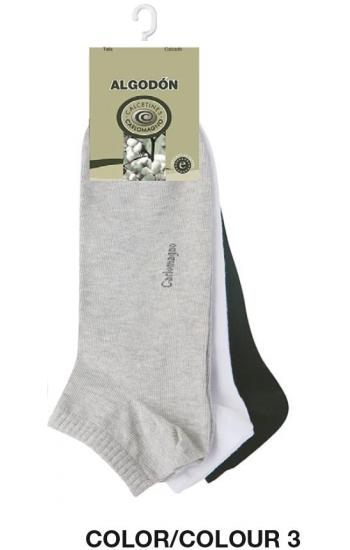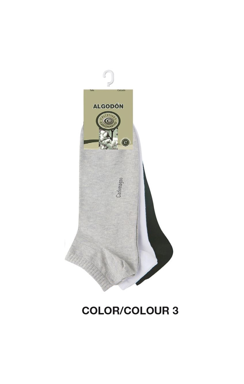 Pack 3 paires de Chaussettes Invisibles Homme en coton peigné avec élasthanne pour plus de confort. Disponible dans les combinaisons Pack 1 : 3 paires Blanches, Pack 2 : 3 paires Noires, Pack 3 : 1 paire Grise 1 paire Blanche 1 paire Noire et Taille Unique (CBO) COMPOSICIÓN: