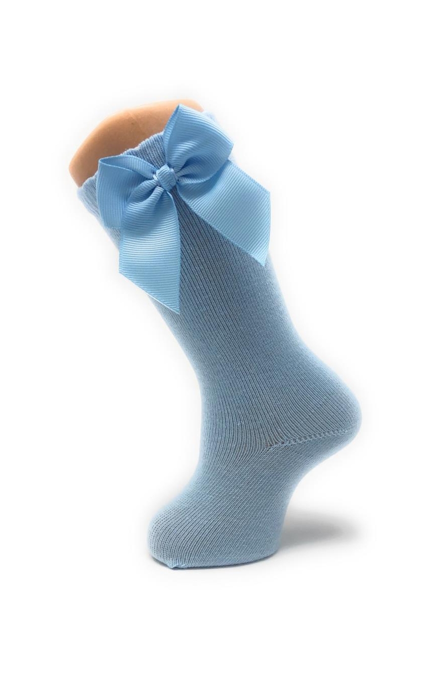 Chaussettes hautes à nœud gros grain en coton peigné avec élasthanne pour plus de confort. Disponible dans une grande variété de couleurs et de la taille 00 3-6 mois à 8 ans.