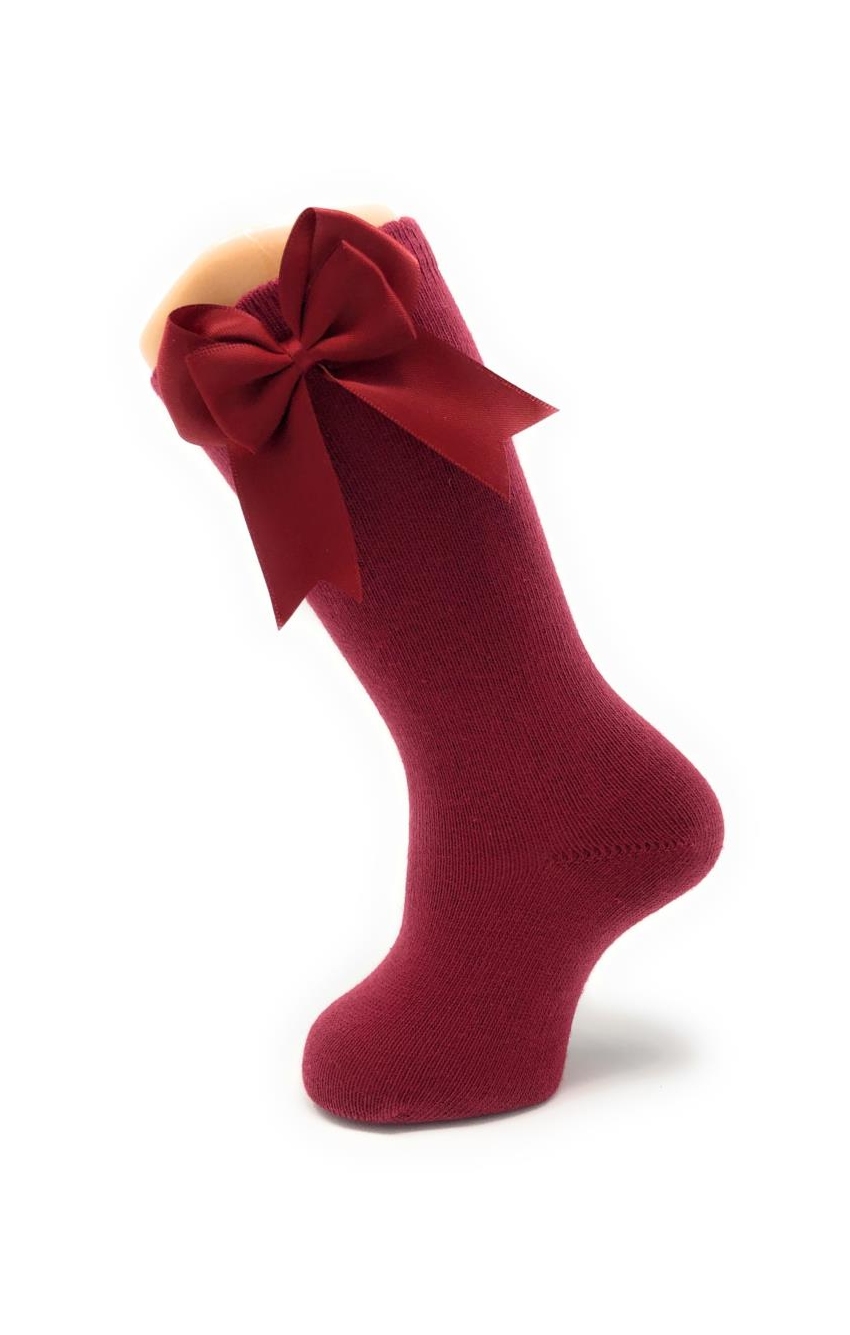 Chaussettes hautes à double nœud en coton peigné avec élasthanne pour plus de confort. Disponible dans une grande variété de couleurs et de la taille 00 3-6 mois à 8 ans.