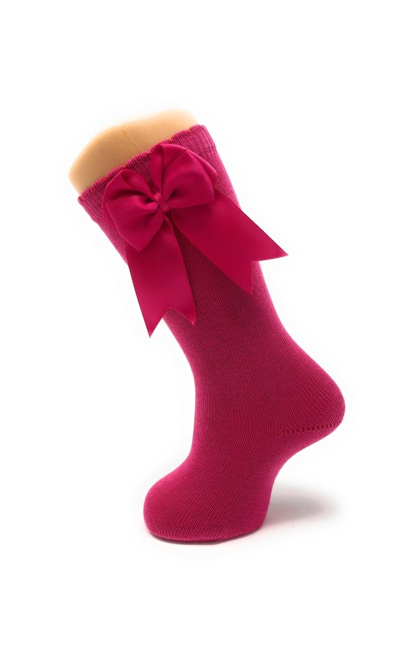 Chaussettes hautes à double nœud en coton peigné avec élasthanne pour plus de confort. Disponible dans une grande variété de couleurs et de la taille 00 3-6 mois à 8 ans.