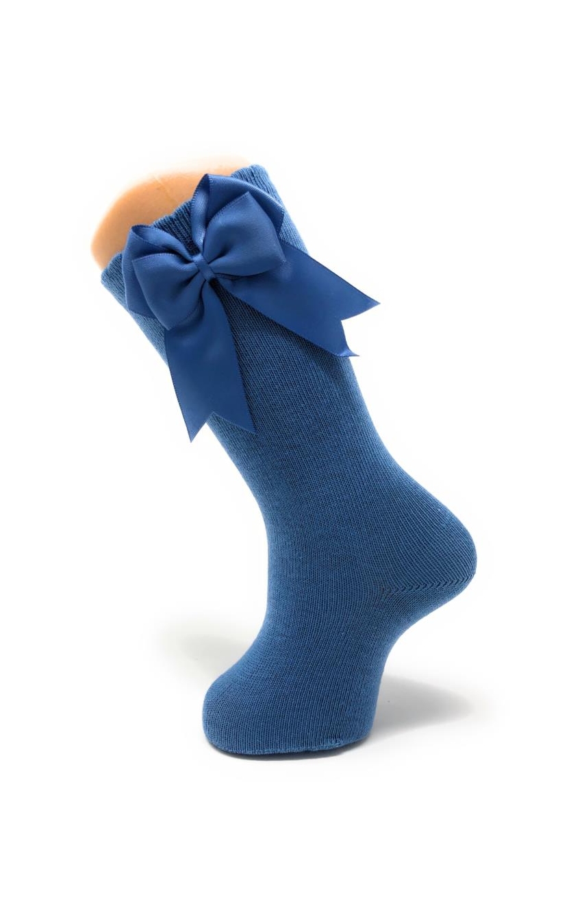 Chaussettes hautes à double nœud en coton peigné avec élasthanne pour plus de confort. Disponible dans une grande variété de couleurs et de la taille 00 3-6 mois à 8 ans.