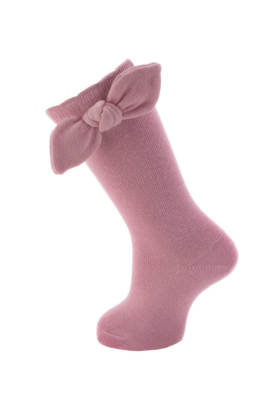 Calzini alti al ginocchio con fiocco in maglia in cotone organico con elastan per un maggiore comfort. Disponibile in un'ampia varietà di colori e dalla taglia 00 3-6 mesi a 8 anni. COMPOSICIÓN: