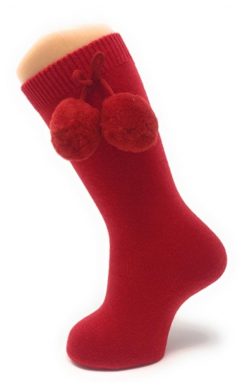 Calzini al ginocchio con nappine in cotone pettinato con elastan per un maggiore comfort. Disponibile in un'ampia varietà di colori e dalla taglia 00 (3-6 mesi) a 8 anni.