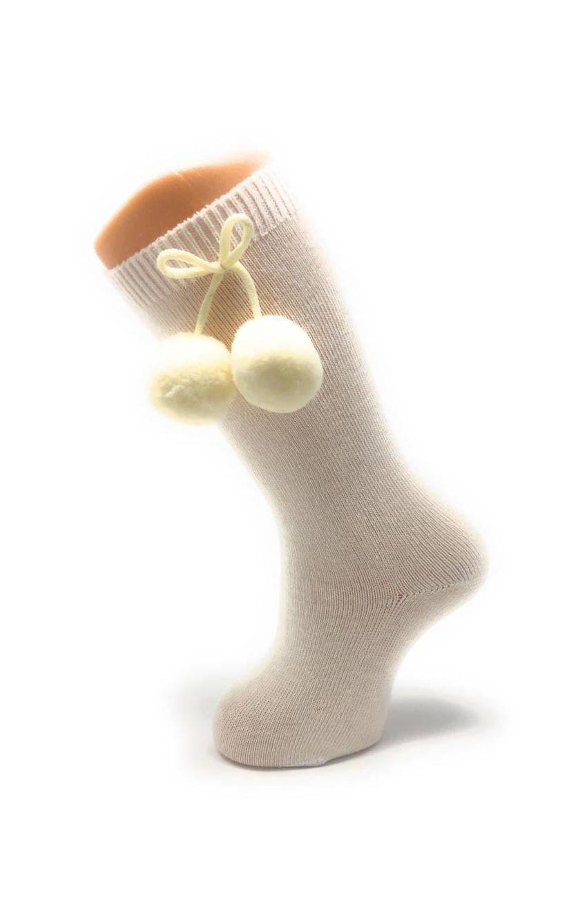 Calzini al ginocchio con nappine in cotone pettinato con elastan per un maggiore comfort. Disponibile in un'ampia varietà di colori e dalla taglia 00 (3-6 mesi) a 8 anni.