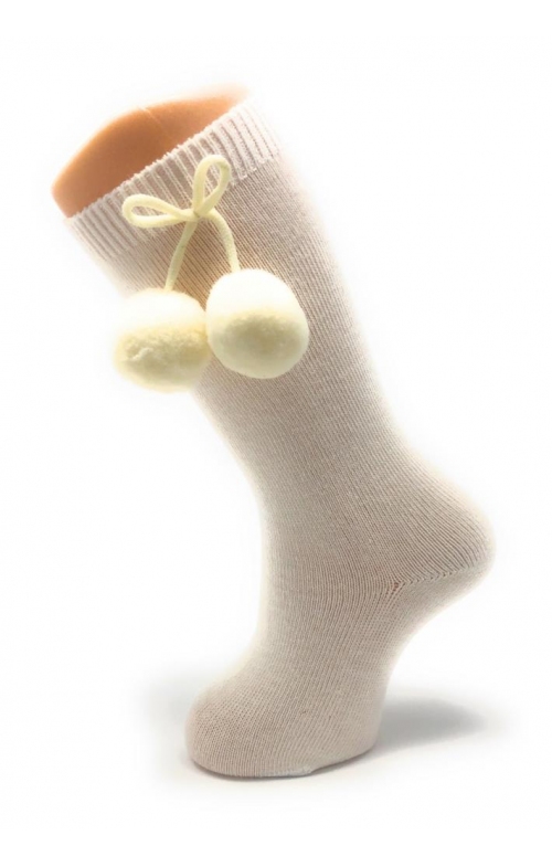 Calzini al ginocchio con nappine in cotone pettinato con elastan per un maggiore comfort. Disponibile in un'ampia varietà di colori e dalla taglia 00 (3-6 mesi) a 8 anni. COMPOSICIÓN: