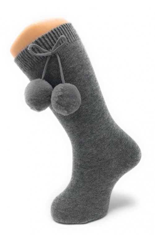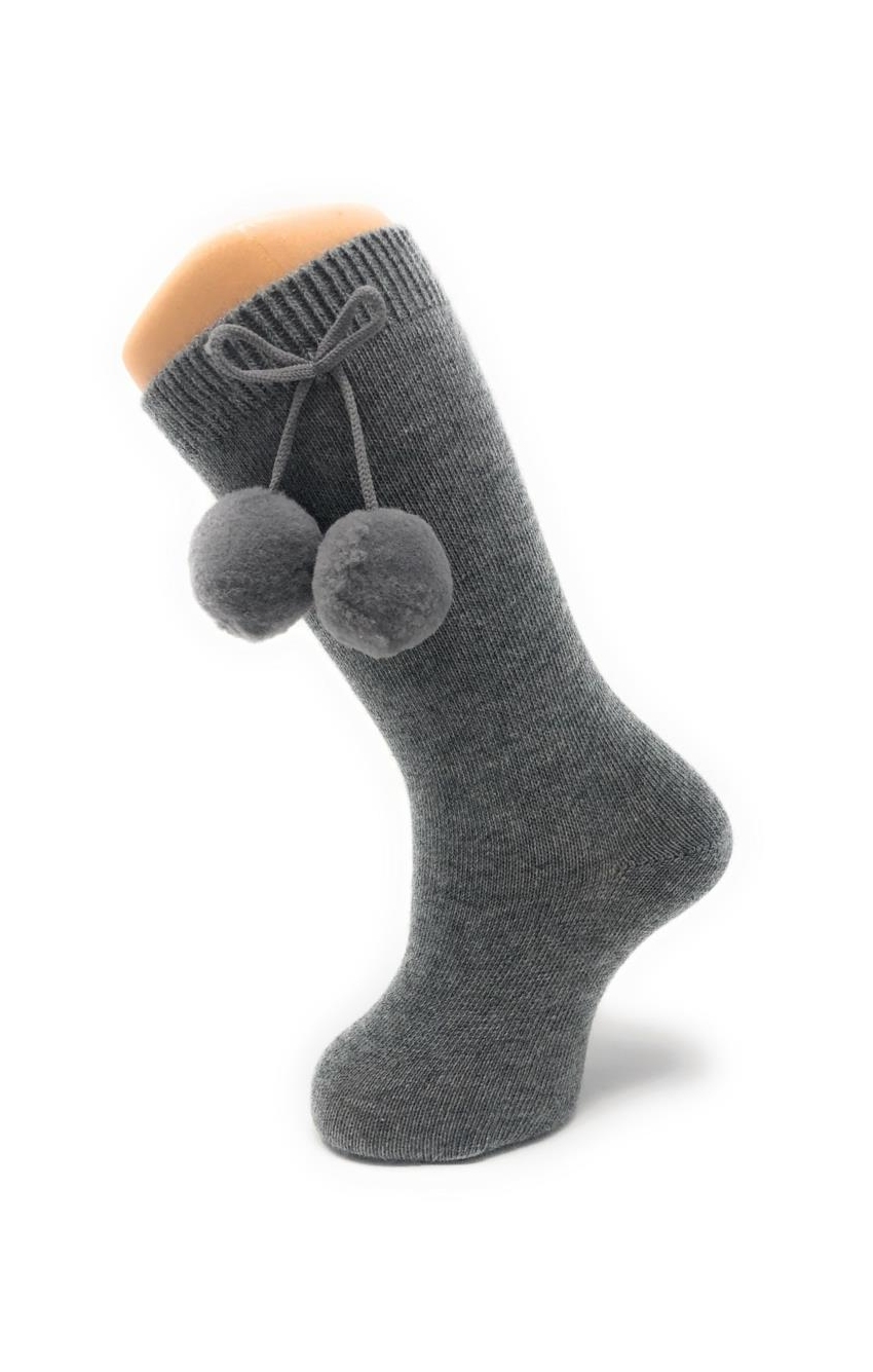 Calzini al ginocchio con nappine in cotone pettinato con elastan per un maggiore comfort. Disponibile in un'ampia varietà di colori e dalla taglia 00 (3-6 mesi) a 8 anni.