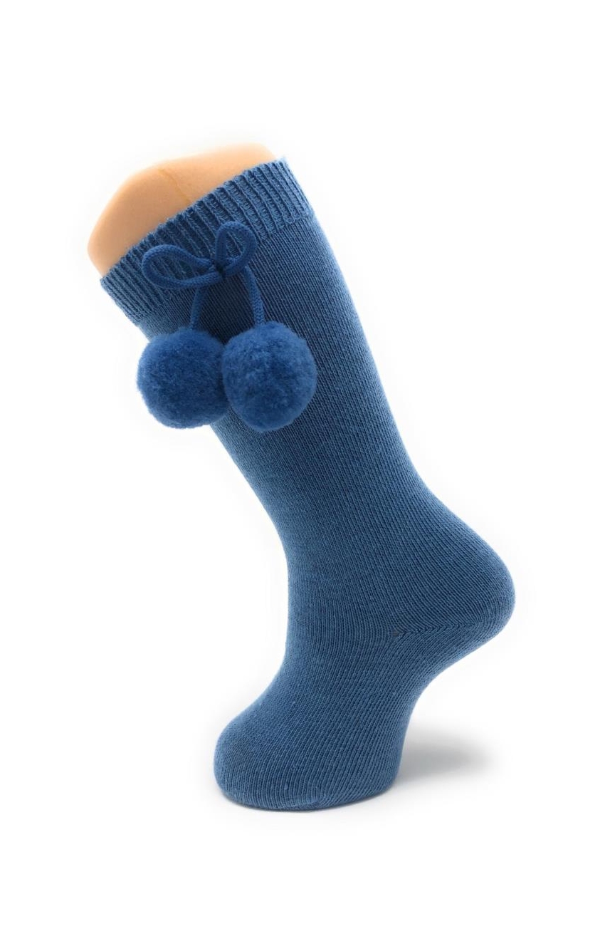 Calzini al ginocchio con nappine in cotone pettinato con elastan per un maggiore comfort. Disponibile in un'ampia varietà di colori e dalla taglia 00 (3-6 mesi) a 8 anni.