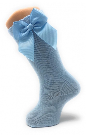 Calze al ginocchio con fiocco in gros-grain in cotone pettinato con elastan per un maggior comfort. Disponibile in un'ampia varietà di colori e dalla taglia 00 3-6 mesi a 8 anni.