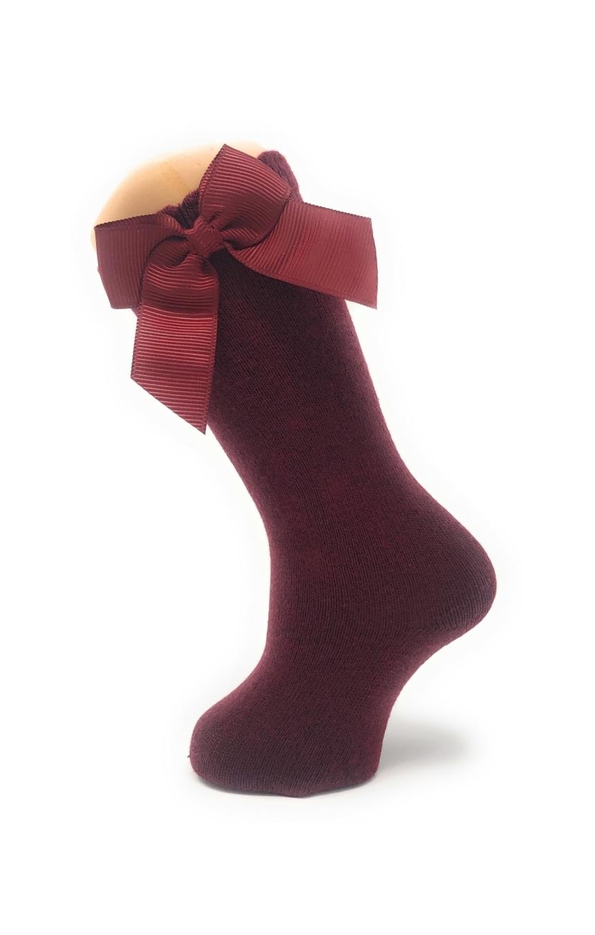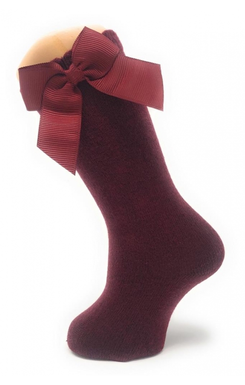 Calze al ginocchio con fiocco in gros-grain in cotone pettinato con elastan per un maggior comfort. Disponibile in un'ampia varietà di colori e dalla taglia 00 3-6 mesi a 8 anni.