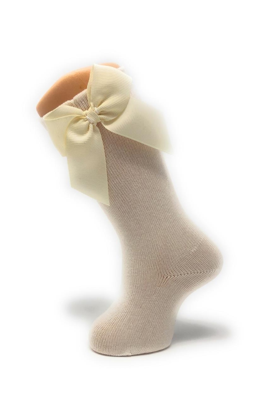 Calze al ginocchio con fiocco in gros-grain in cotone pettinato con elastan per un maggior comfort. Disponibile in un'ampia varietà di colori e dalla taglia 00 3-6 mesi a 8 anni.