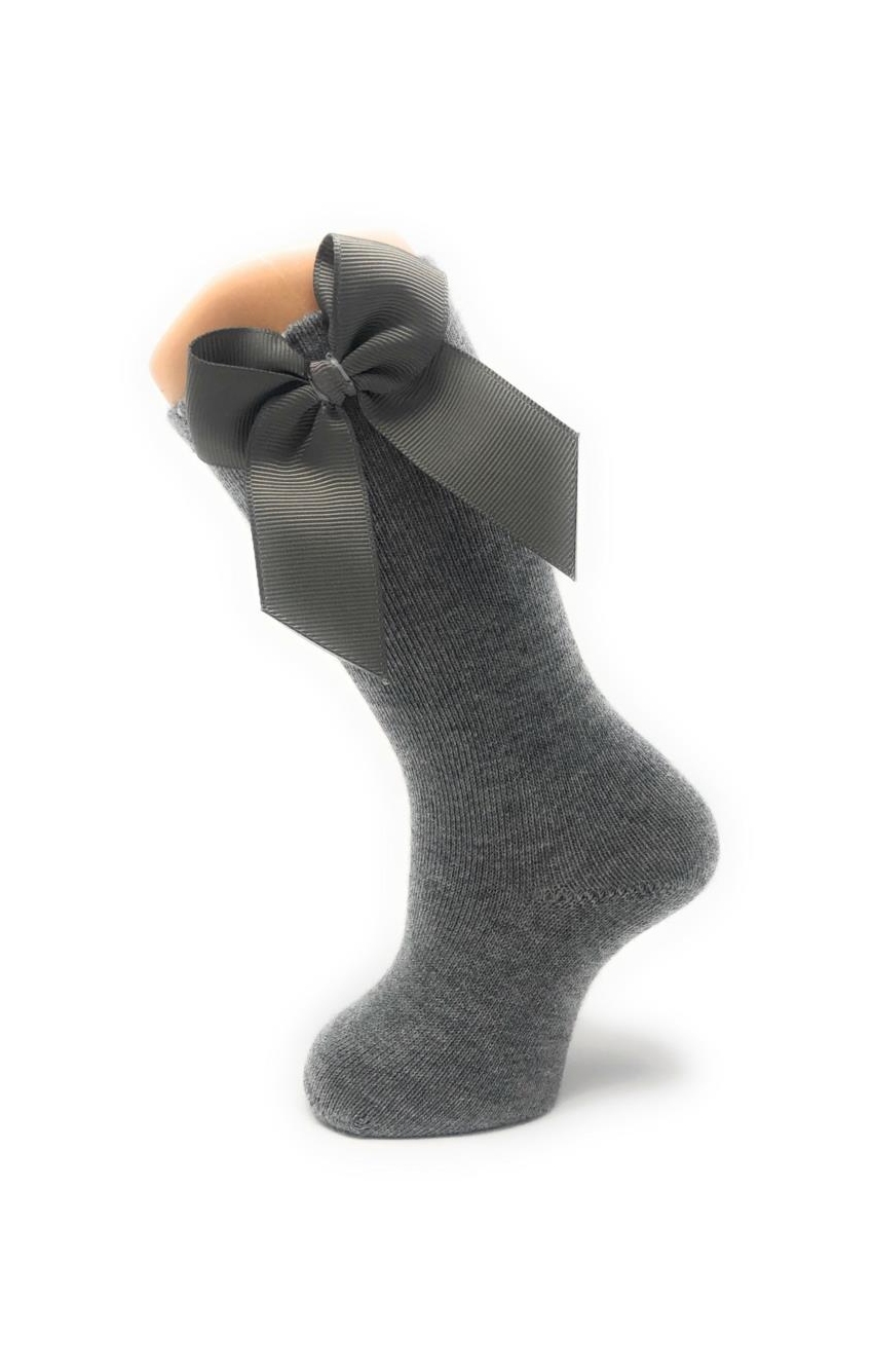Calze al ginocchio con fiocco in gros-grain in cotone pettinato con elastan per un maggior comfort. Disponibile in un'ampia varietà di colori e dalla taglia 00 3-6 mesi a 8 anni.