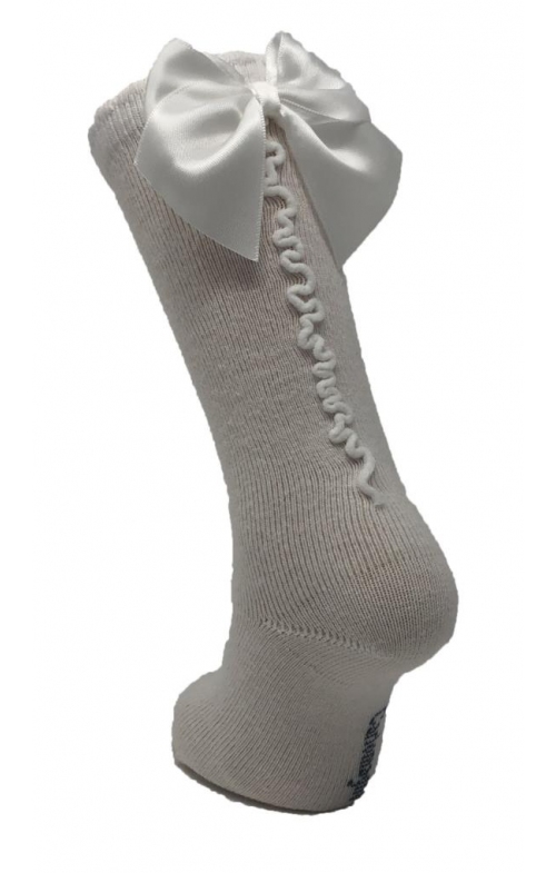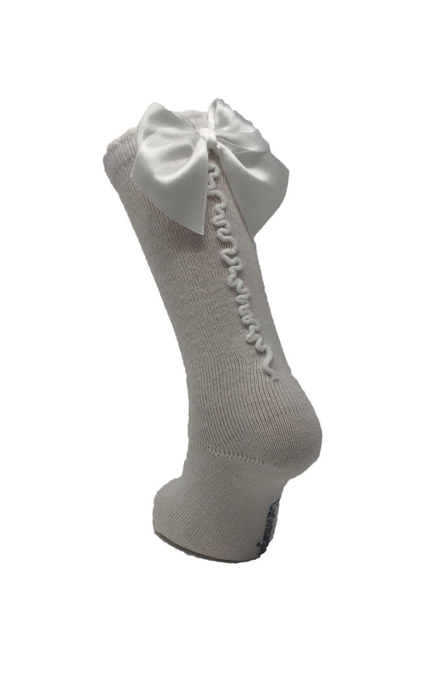Calzini al ginocchio con fiocco e cucitura posteriore in cotone pettinato con elastan per un maggiore comfort. Disponibile in un'ampia varietà di colori e dalla taglia 00 3-6 mesi a 8 anni. COMPOSICIÓN: