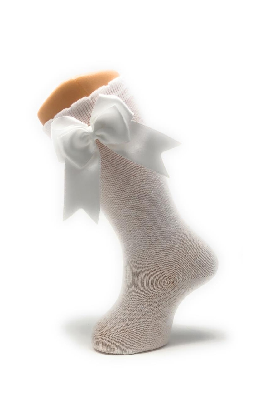 Calze al ginocchio con doppio fiocco in cotone pettinato con elastan per un maggior comfort. Disponibile in un'ampia varietà di colori e dalla taglia 00 3-6 mesi a 8 anni.