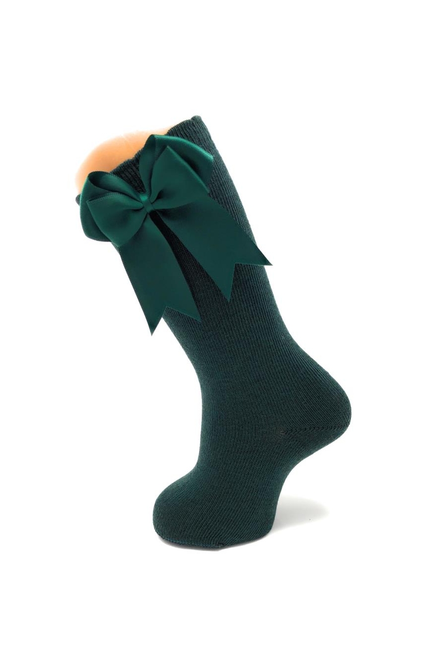 Calze al ginocchio con doppio fiocco in cotone pettinato con elastan per un maggior comfort. Disponibile in un'ampia varietà di colori e dalla taglia 00 3-6 mesi a 8 anni.