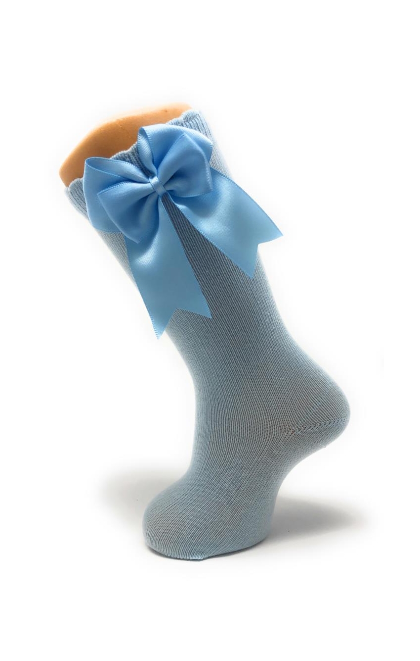 Calze al ginocchio con doppio fiocco in cotone pettinato con elastan per un maggior comfort. Disponibile in un'ampia varietà di colori e dalla taglia 00 3-6 mesi a 8 anni.