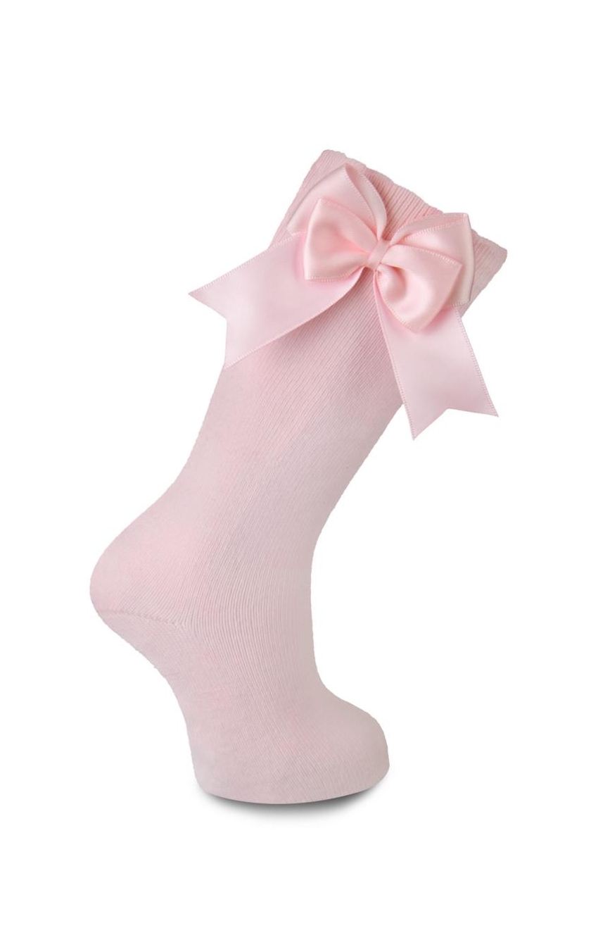 Calze al ginocchio con doppio fiocco in cotone pettinato con elastan per un maggior comfort. Disponibile in un'ampia varietà di colori e dalla taglia 00 3-6 mesi a 8 anni.